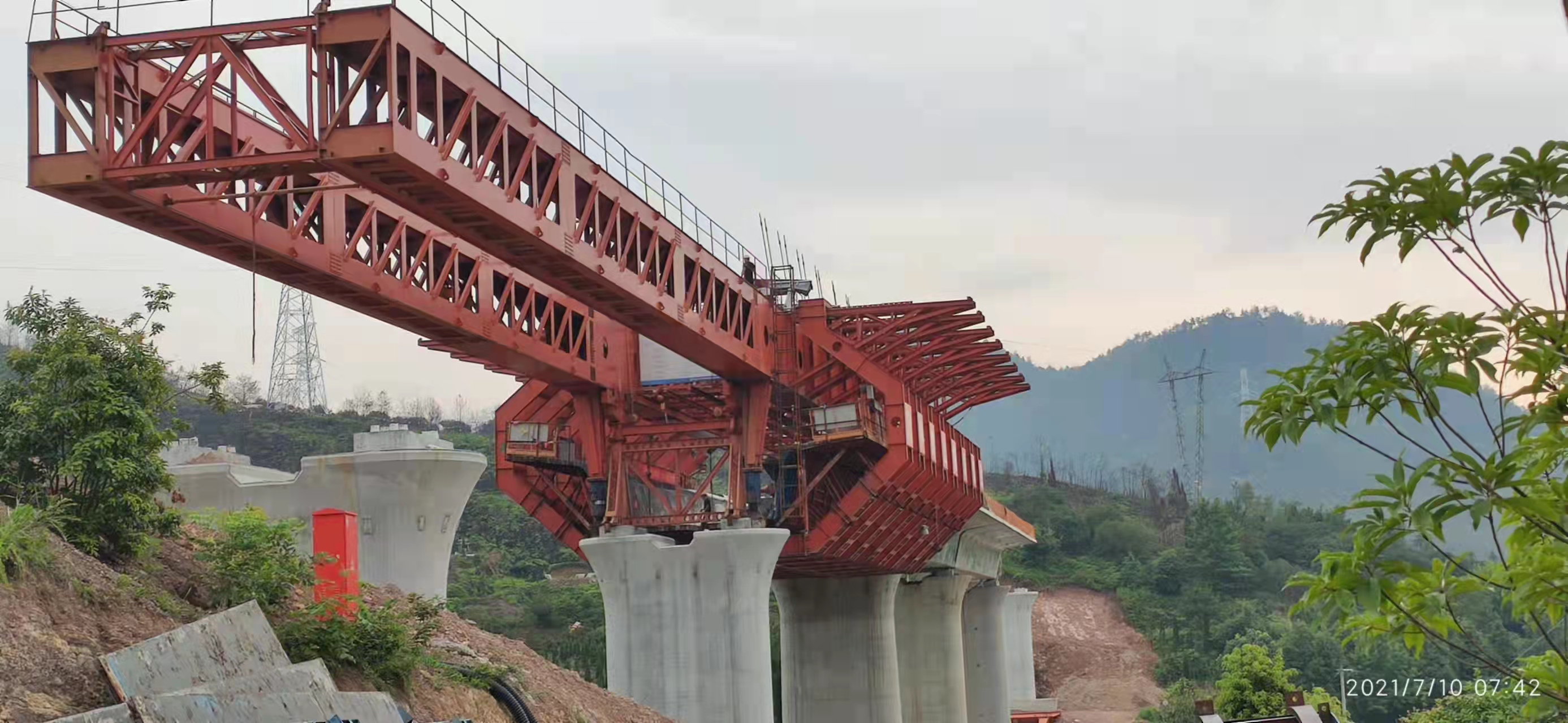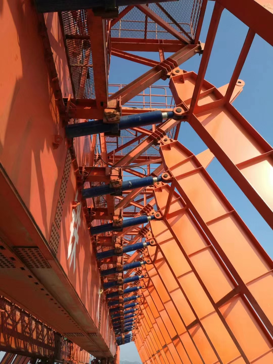 河北承德架桥机出租公司架桥机是在公路、铁路桥梁架设上常用的一种大型起重机械,架桥机主要由主、辅纵导梁及支撑系统,主横梁及起吊系统,主导梁纵移系统,前、后支架前移系统等组成。